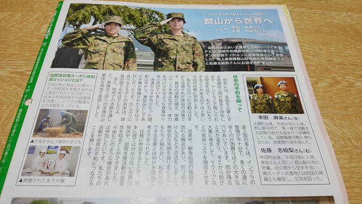 地元郡山市が発行している「広報こおりやま」10月号の最後の頁に、「郡山から世界へ」というインタビュー記事が載っている。登場しているのは、地元郡山市出身で陸上自衛隊郡山駐屯地の幸田麻美さんと佐藤志絵梨さんの二人。