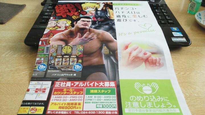 画像は、「パチンコ・パチスロは適度に楽しむ遊びです」「のめり込みに注意しましょう」という新聞の折り込み広告。パチンコ依存症を理由に、パチンコ廃止を訴える勢力への事前防止策だろうが、実に白々しいチラシである(苦笑)